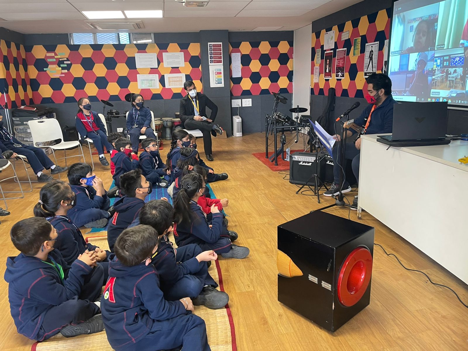 Year 1 and 2 students enjoying the melody and rhytmn during the music lesson.